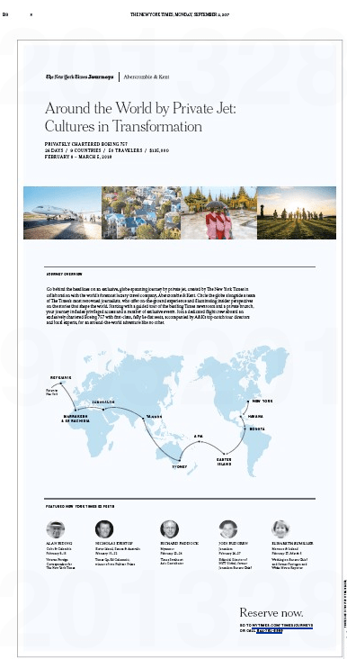 As the hardworking staff noted several months ago, the New York Times Journeys travel agency has faced an uphill battle selling out its Around the World by Private Jet: Cultures in Transformation.