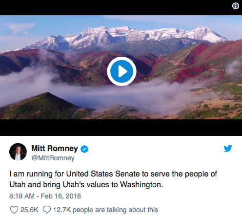 Yesterday Mitt Romney (R-Wherever) threw his top hat into the Utah Senate race with this tweet.