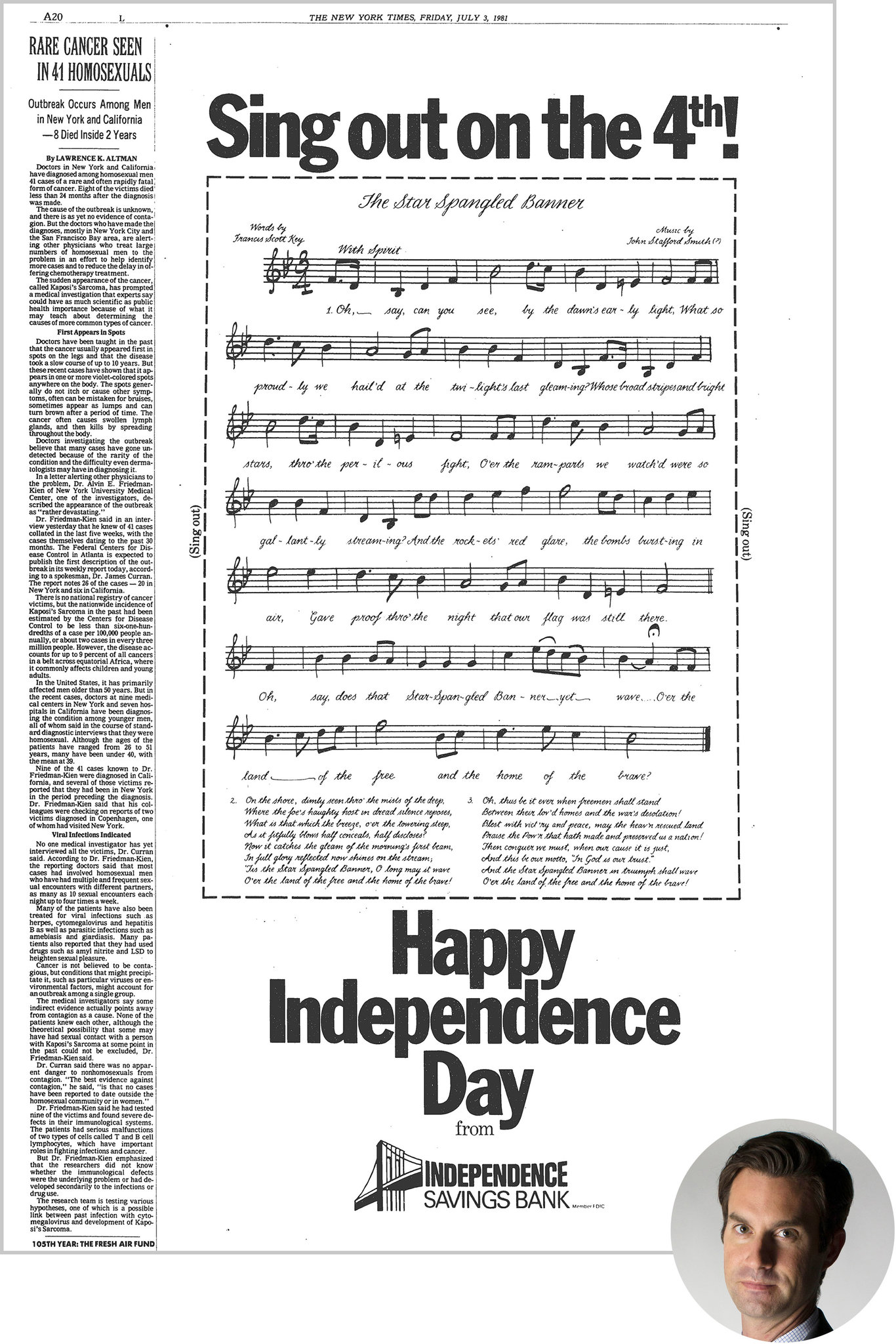From July 3, 1981, the first article in The New York Times mentioning a “rare cancer.” Inset: Jeremy W. Peters