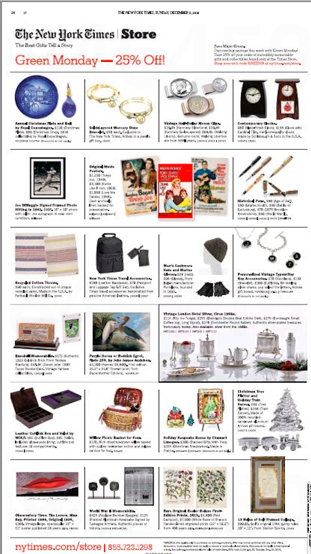 • The Times Store features chotchkes ranging from custom birthday books to NYT coffee mugs. Representative ad: