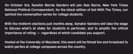 It’s all part of the Times’s “spirited live conversation series for college students.”