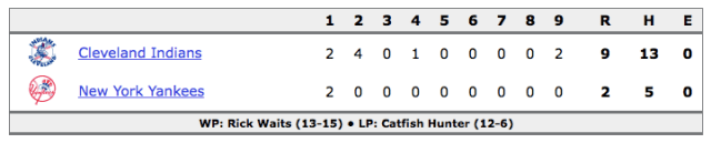 And I’m watching the game and it’s the top of the 7th, Sox up 2-0, and Dent comes to the plate with two men on base and Mike Torrez on the mound. And here’s what happened next.