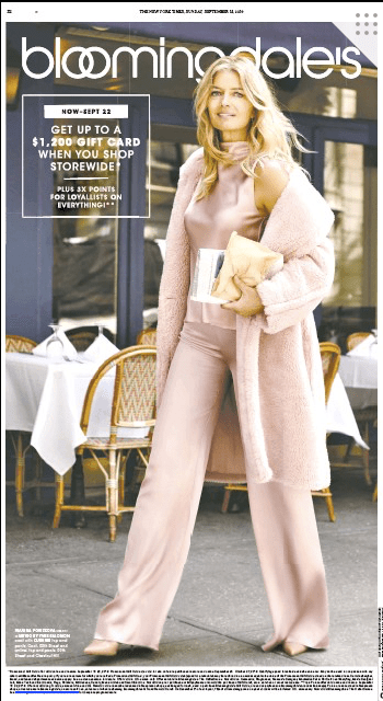 Coincidentally (or not): September 15th full-page Bloomingdale’s ad featuring Ocasek’s wife Paulina Porizkova in the Times.