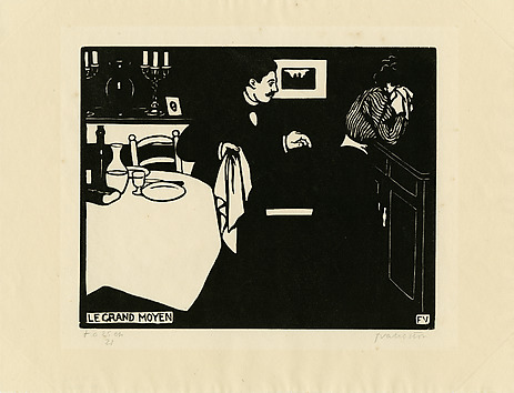 Here are some representative samples from Vallotton’s 1897-1898 Intimacies series of woodcuts, all infused with ambiguity and tension.