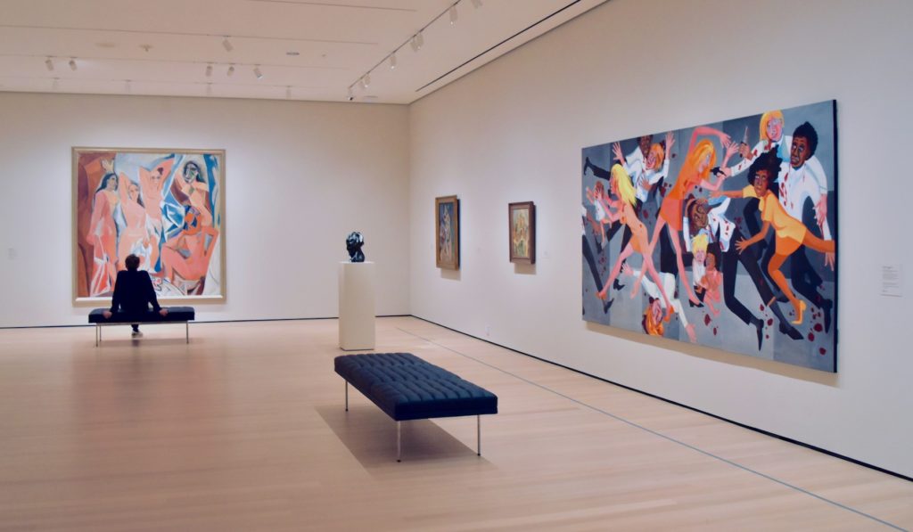 We spent a good – a very good – two hours traversing those galleries and thought most of the changes were for the better, even the rumpus rooms like “Around Les Demoiselles d’Avignon,” which has been roundly criticized for pairing Picasso’s breakthrough 1907 painting with Faith Ringgold’s 1967 depiction of a race riot.