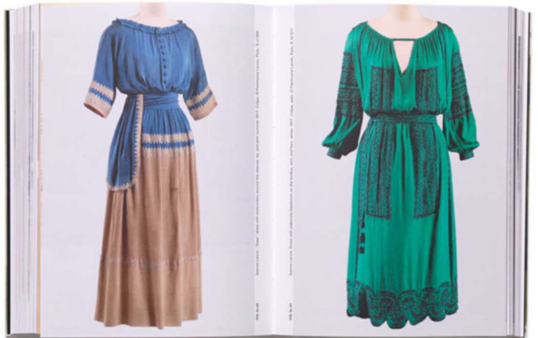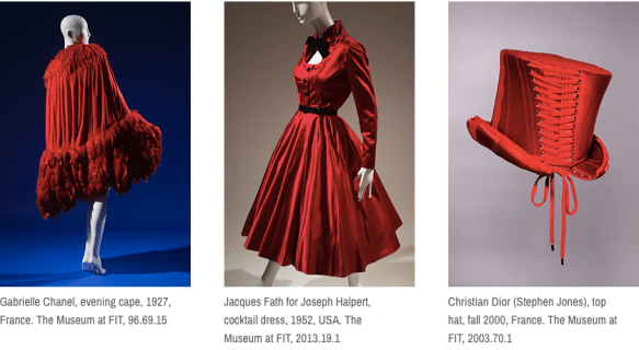 It is/was a terrific exhibit, “presenting an original couture suit by Chanel together with a virtually identical licensed copy sold by Orbach’s department store . . . [ demonstrating] how the idea of Paris fashion ‘works’ across fashion cultures, appealing to elite American women and making money for American manufacturers and retailers.”