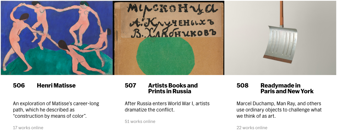 Whatever, we started on the 5th floor, which contains artworks from the 1880s to the 1940s – MoMA’s sweet spot. What’s not so sweet to many critics is the absence of the traditional “isms” in organizing the works, as Filler notes.