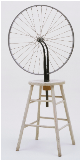 place of Dadaism we now have “Readymade in Paris and New York,” as if laypersons know that specialist term for the innovation of appropriating a found object and declaring it a work of art—exemplified by Marcel Duchamp’s Bicycle Wheel (1913/1951) and the snow shovel he named In Advance of the Broken Arm (1915/1964), both seen here in facsimiles recreated by the artist after the originals were lost. We also have “Masters of Popular Painting,” a designation more befitting Norman Rockwell and N.C. Wyeth than the Outsider artists unknown during their lifetimes and happily displayed here (including the magical Bill Traylor).