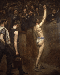 pervasive anxiety posed by the threat of emasculation and the constant need to prove oneself as a man fostered a sense of an ideal manliness that was cutthroat or “primitive,” a masculinity characterized by passion, vigor, and aggressiveness and manifested through violence, displays and abuses of power, and alienation. Drawn from the Addison’s collection, the works on view in this exhibition reflect the constant redefinition of masculinity in American society during the 19th and early 20th centuries, inviting us to think critically about the shifting definitions of gender roles.