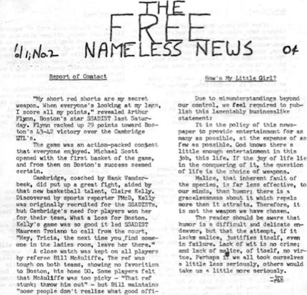 As a parting gift to my fellow bureaucrats, I published Vol. 3, No. 1 (Only 0¢) of The Free Nameless News. It included this farewell note.