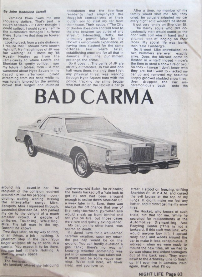 I even got a chance to relate personal stories like this one about my myriad automotive catastrophes in pre-gentrification Jamaica Plain.