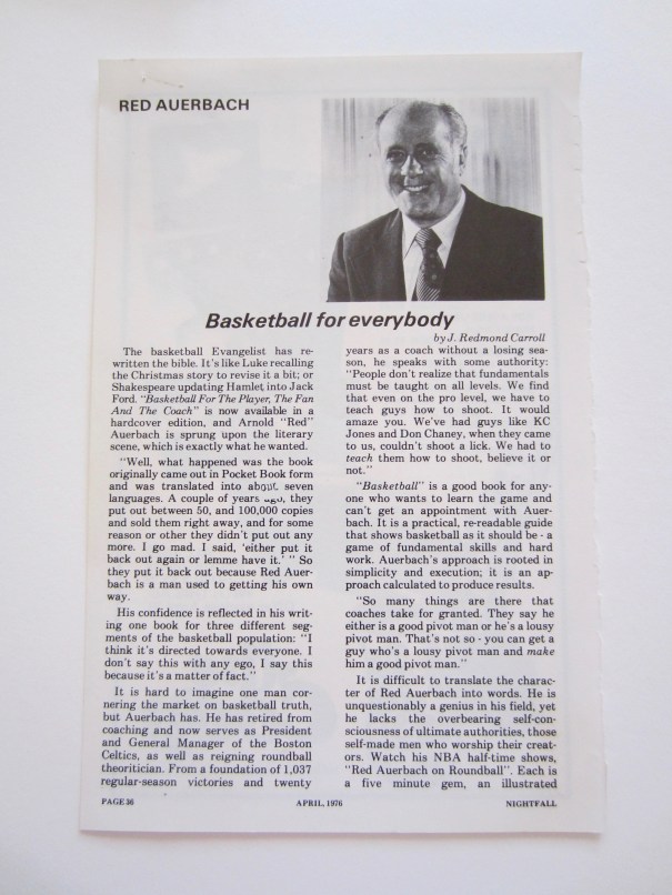 He was flacking a new book – Basketball for the Player, the Fan and the Coach – so he would pretty much talk to any journalist, which happened to include even me.