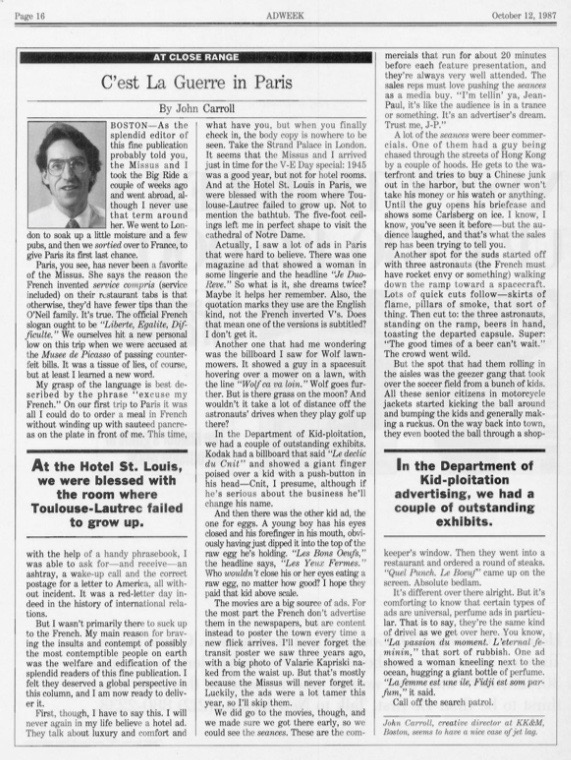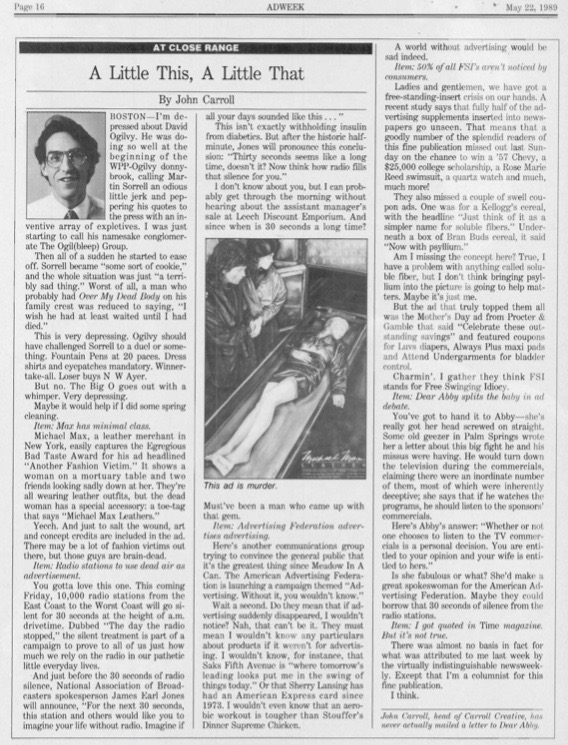 That column also established the style of signoff I would use for the next decade when I wrote about the advertising industry.