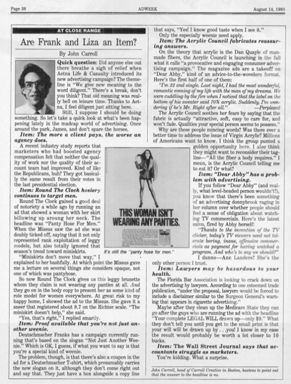 The columns above represent two-thirds of my output in the first five months I was with the magazine. All told, I produced 157 columns over the course of eights years at Adweek.