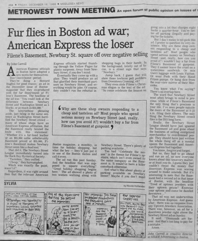 I also covered an advertising dustup between tony Newbury Street and funky Filene’s Basement.