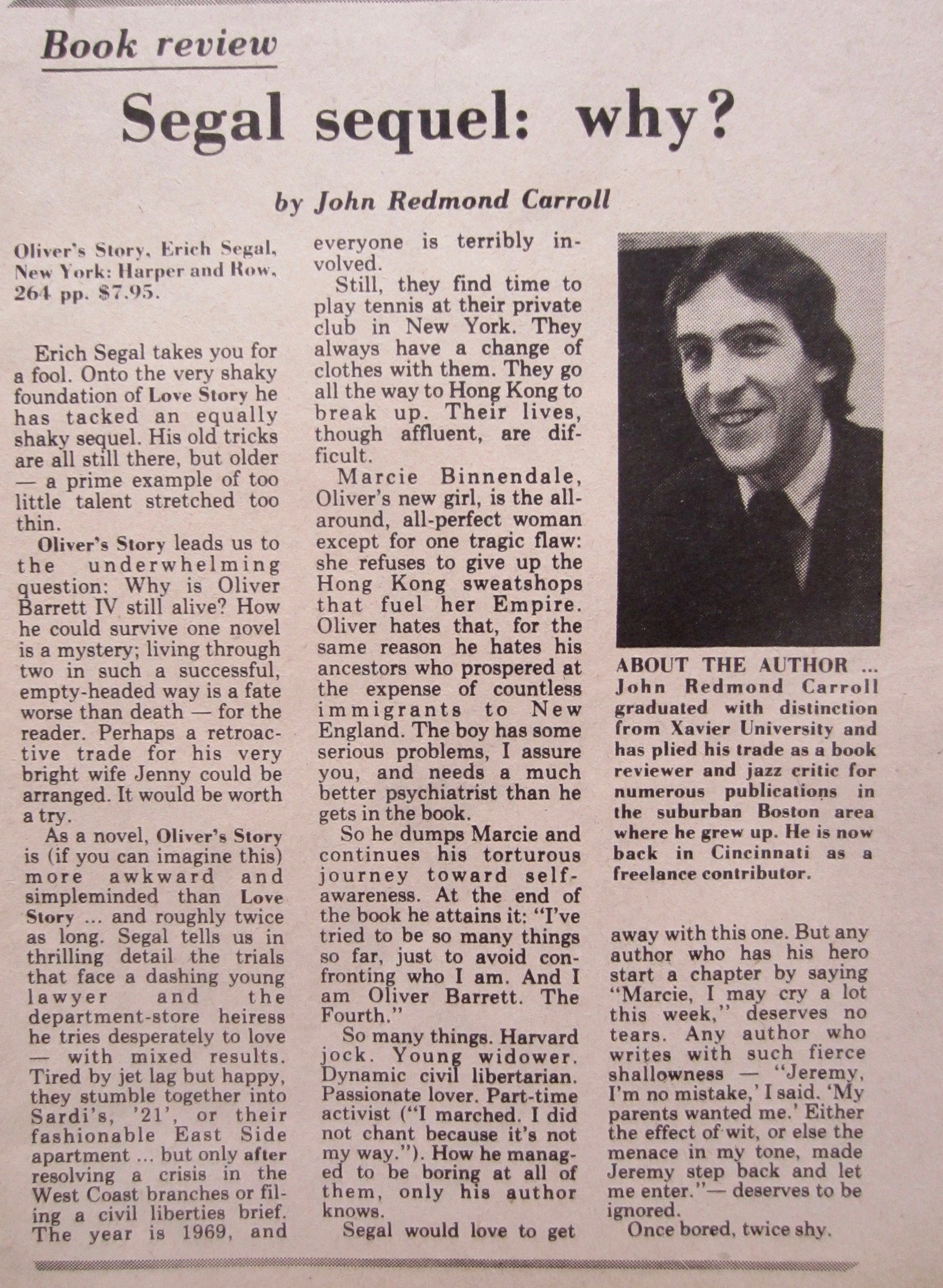 My most prolific work in Cincinnati was for The Rivertown Times, where I contributed book reviews, record reviews, and reviews of concerts by artists ranging from George Benson (a five-and-dime Nat Cole) to Led Zeppelin (“The crowd rarely rocked – Zeppelin’s noise level, sufficient to make dentures clatter at five hundred feet, is much more conducive to vibrating in place”).