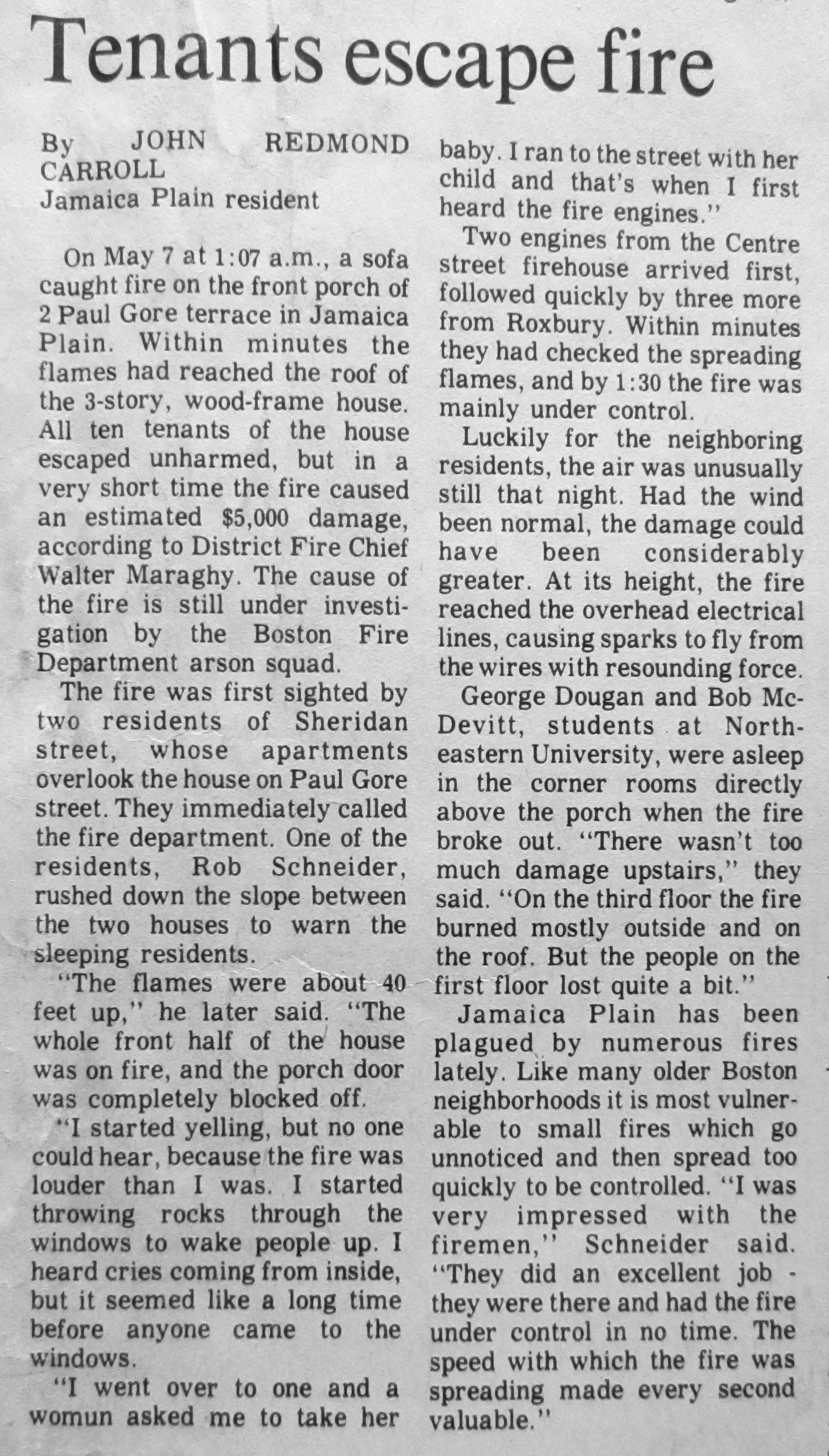 In May of 1975, I filed this report for the Jamaica Plain Citizen about a neighborhood fire.