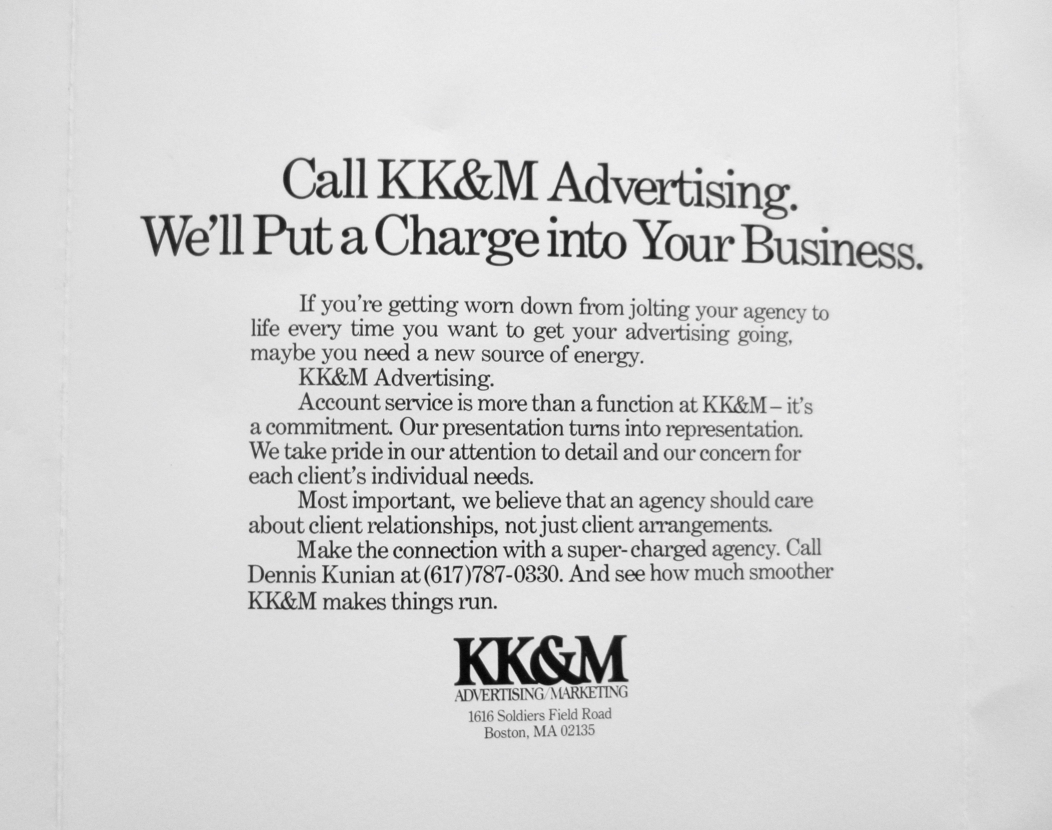 In subsequent months I a) wrote an imaginary boardroom/strategy session of executives looking to change the formula for Pepsi-Cola (the Coca-Cola Company had introduced New Coke several months earlier), b) covered that year’s Hatch Awards as a 15-round heavyweight bout between Rhode Island boutique shop Leonard Monahan Saabye and Boston mega-agency Hill Holliday Connors Cosmopulos (LMS by a knockout), and c) dispensed New Year’s resolutions for clients, agencies, and the communications world at large.