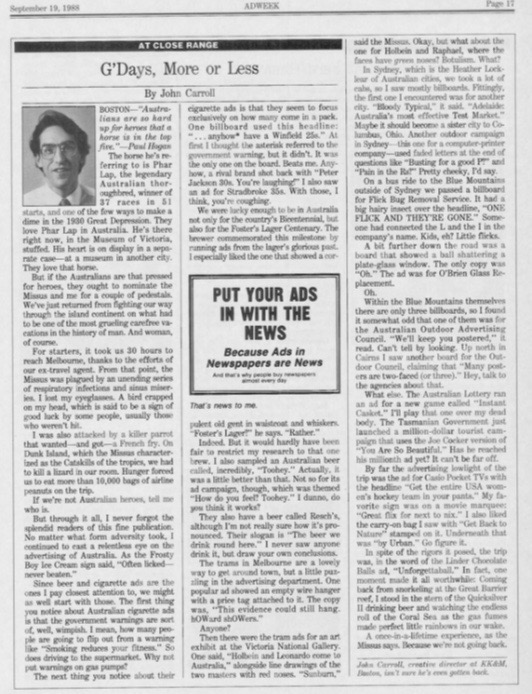 That column also established the style of signoff I would use for the next decade when I wrote about the advertising industry.