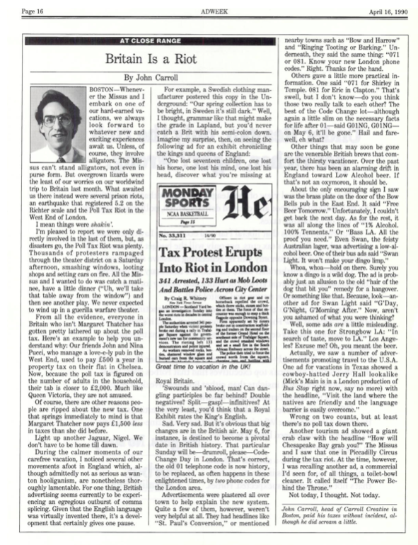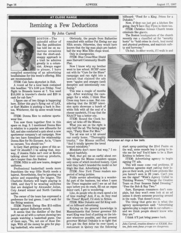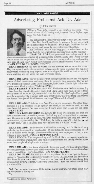 The columns above represent two-thirds of my output in the first five months I was with the magazine. All told, I produced 157 columns over the course of eights years at Adweek.