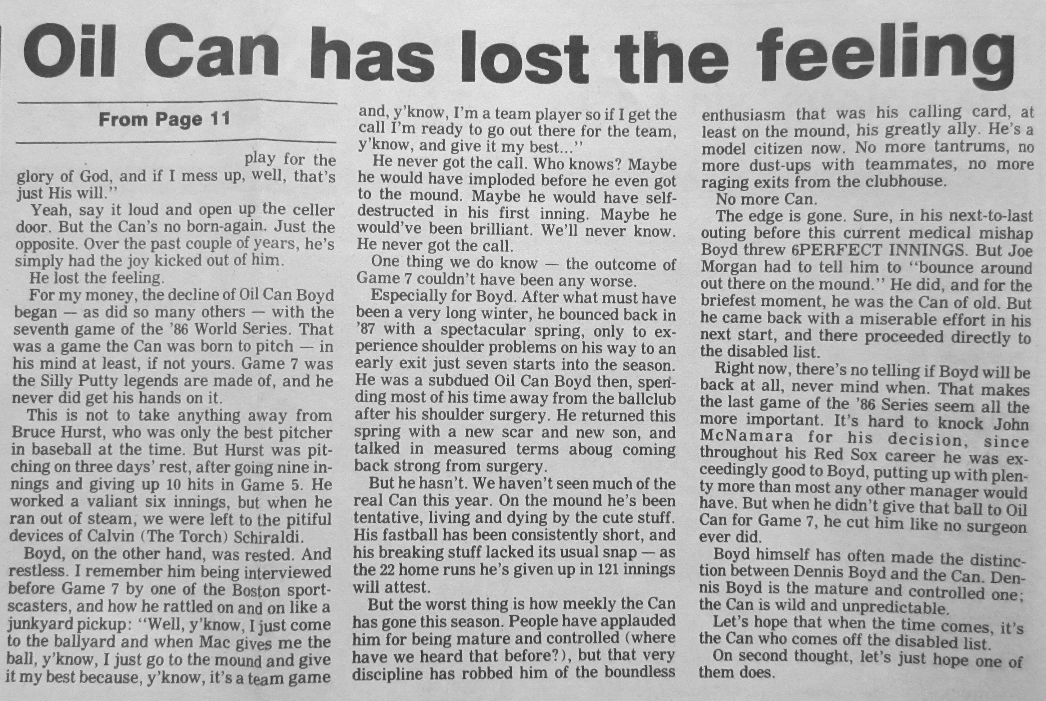 This column about Dennis “Oil Can” Boyd, by contrast, was less amicus and more valedictory.