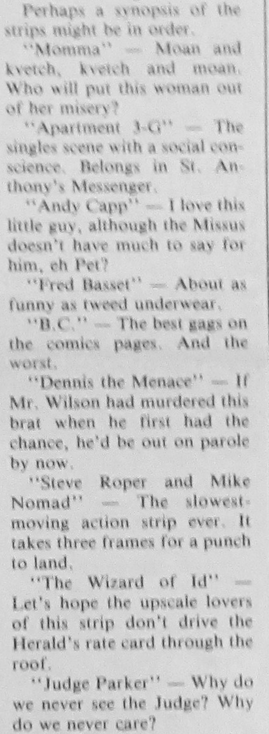 Although they’re 35 years old, I like to think that my capsule summaries of the shanghaied strips still ring true.