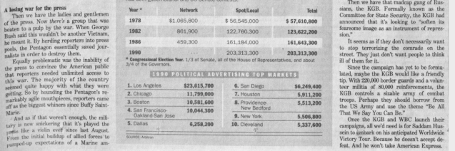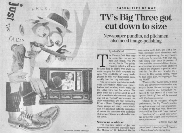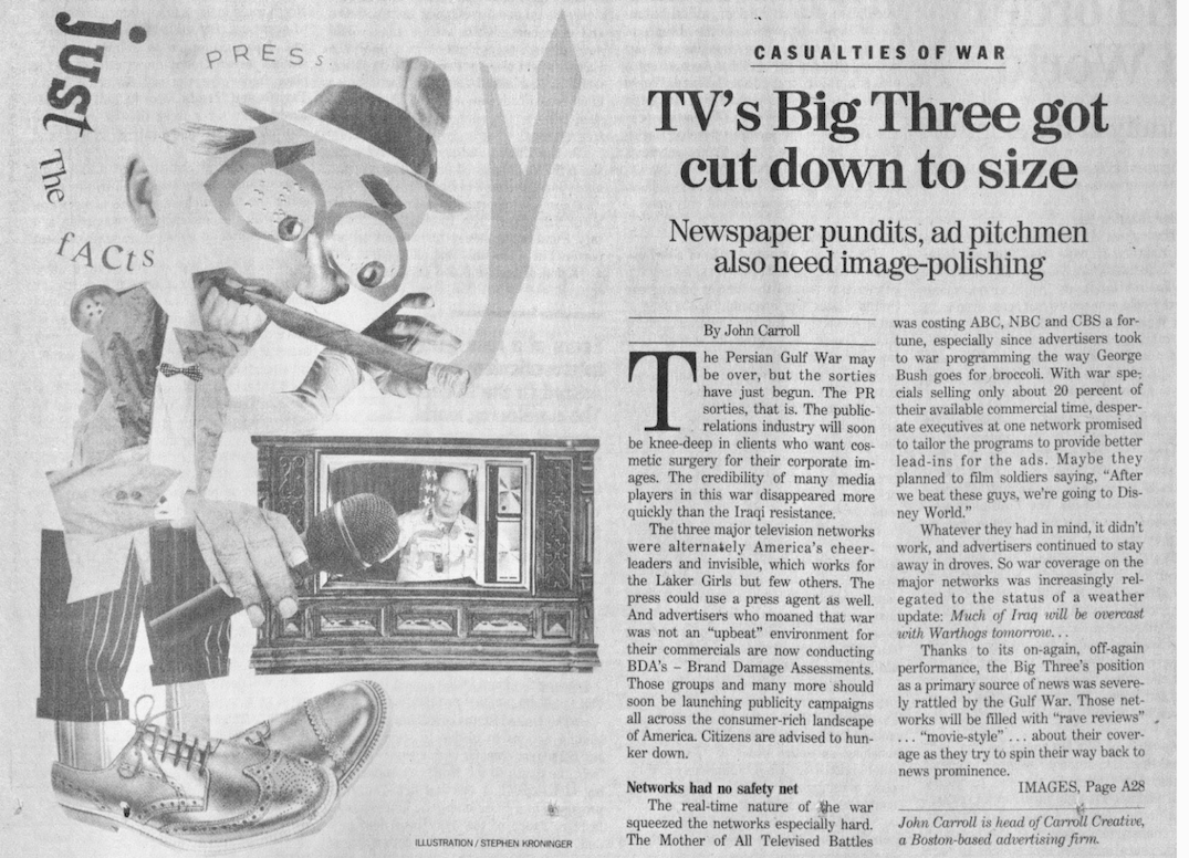 The following year I finally cracked the Boston Globe with a Focus section piece about the collateral damage done by the media coverage of the Persian Gulf War.