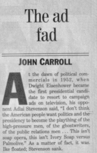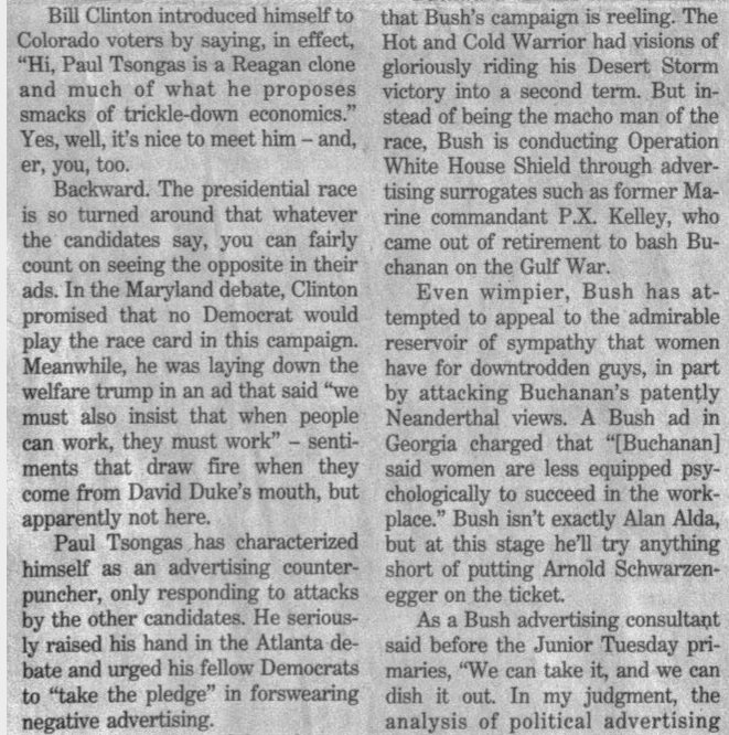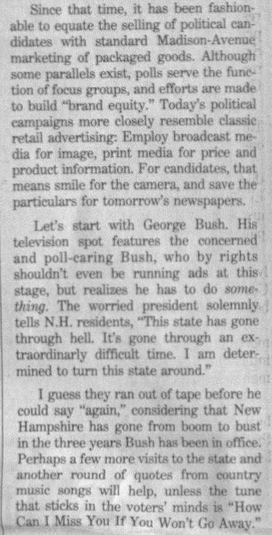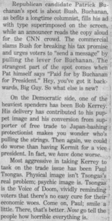 At the end of the 1990 election cycle, I sort of unloaded on the dreadful parade of dismal campaign ads.