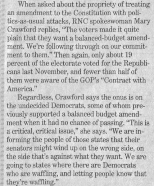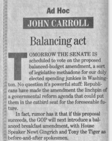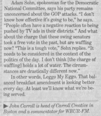 To this day I believe that a balanced breakfast amendment would be a great step forward for the American people. But I’m not sure it’s all that high on their wish list.