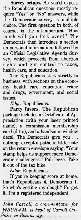 I also had a few observations about the GOP’s fundraising techniques at the time.