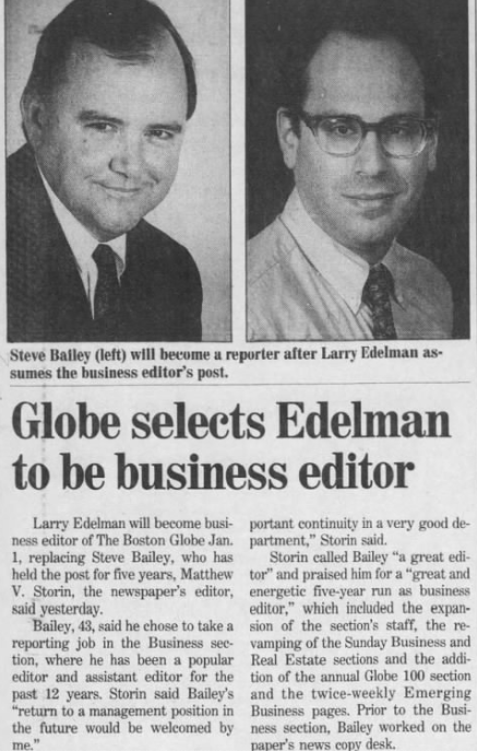 In the Globe newsroom, I was told to take a seat: “Mr. Bailey is in a meeting.” A meeting that everyone could hear through the closed door of Storin’s office.