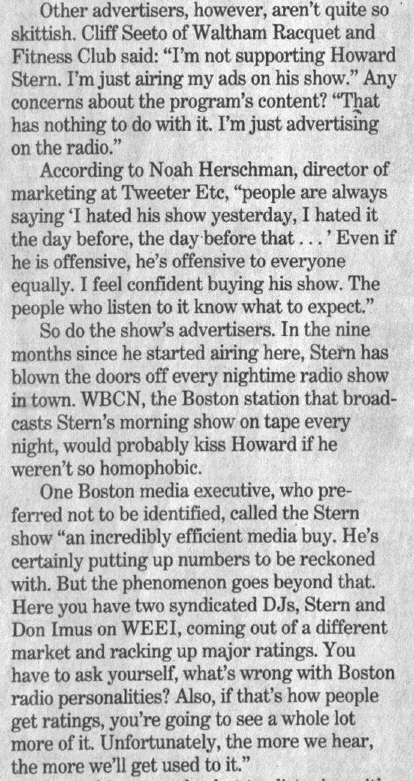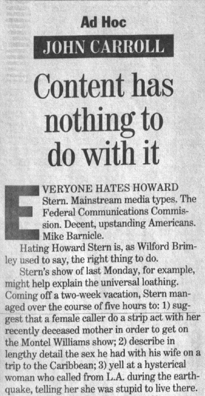 Anyway, I continued to write the Globe column for the next 15 months. I never had occasion to mention Howard Stern again.