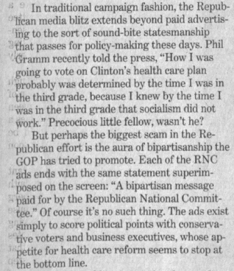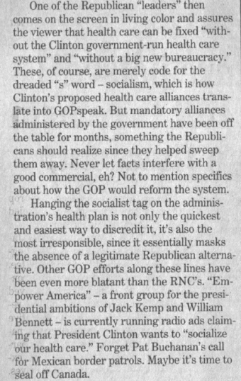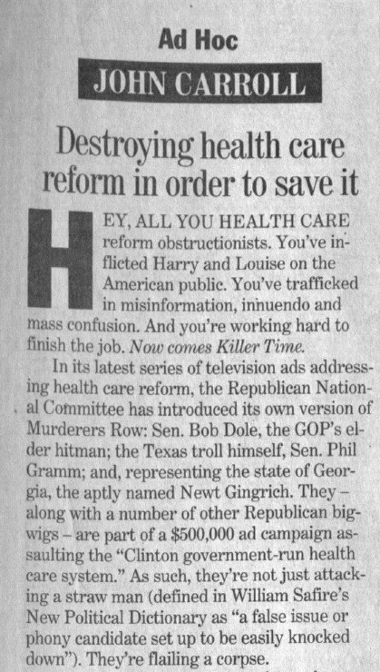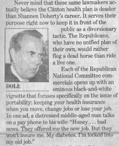 That year the his ‘n’ her Health Security Plan flogged by Bill and Hillary Clinton provided endless grist for the mill.