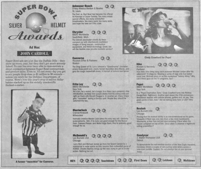 I also twice reviewed Super Bowl ads, filing in time for the next morning’s edition of the paper.