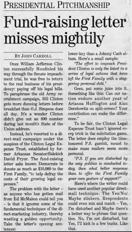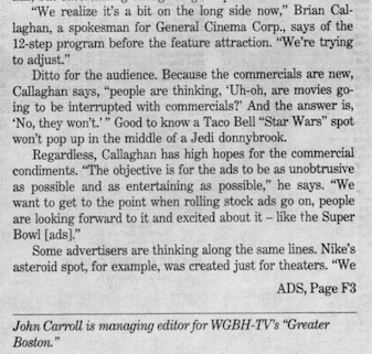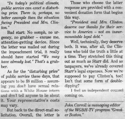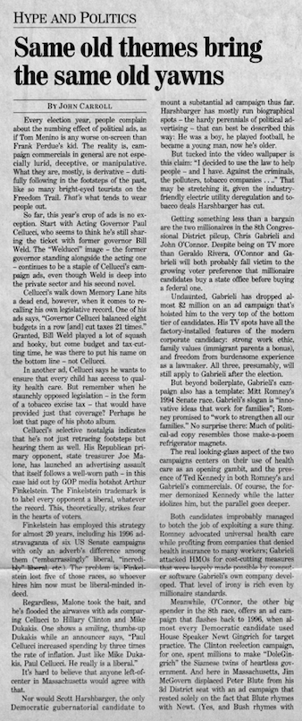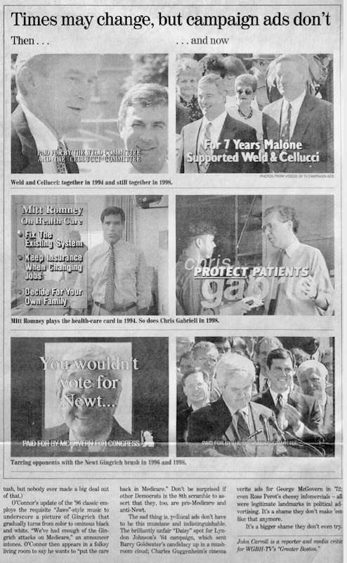 I also wrote a couple of Globe Focus pieces in ’98. The first one dealt with what seemed at the time as the eternal sameness of political advertising.