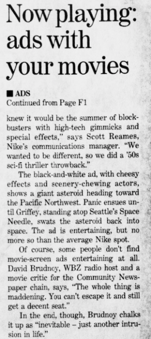 Another piece for Marketplace detailed what might have been the first-ever lawsuit of its kind: an ad agency being sued by its client for committing advertising malpractice. The retail shoe chain Just For Feet said it was bullied by Saatchi & Saatchi Business Communications into running a Super Bowl ad that tarnished the chain’s image and damaged its business.