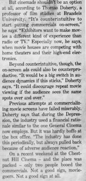 As if that weren’t enough, ads are also wriggling into previously uncharted territory on TV. Not content with occupying a mere 20% of every primetime hour, advertisers are on the verge of placing ads inside the programs. That would make the line between ads and entertainment blurry enough to require a VP/Optometry at every network . . .