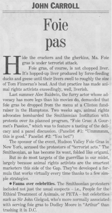 Pingback: Town of Brookline’s Latest Ban Is Truly a Coup de Foie Gras | Campaign Outsider