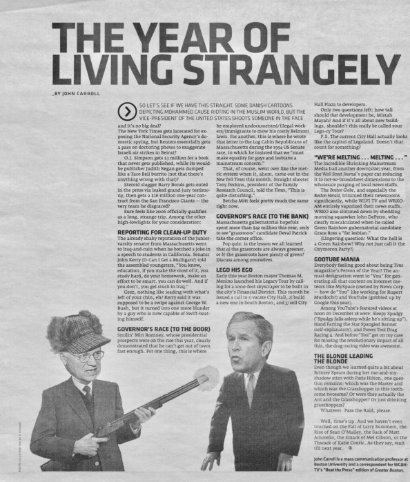 So I was a kind of a labor/management Minotaur at ‘GBH, although what was slain in that instance was my freelance career, thanks in no small part to the December 1998 debut of Beat the Press, the station’s weekly media review program. Once you start passing judgment on other media outlets, you can’t very well contribute to them at the same time.