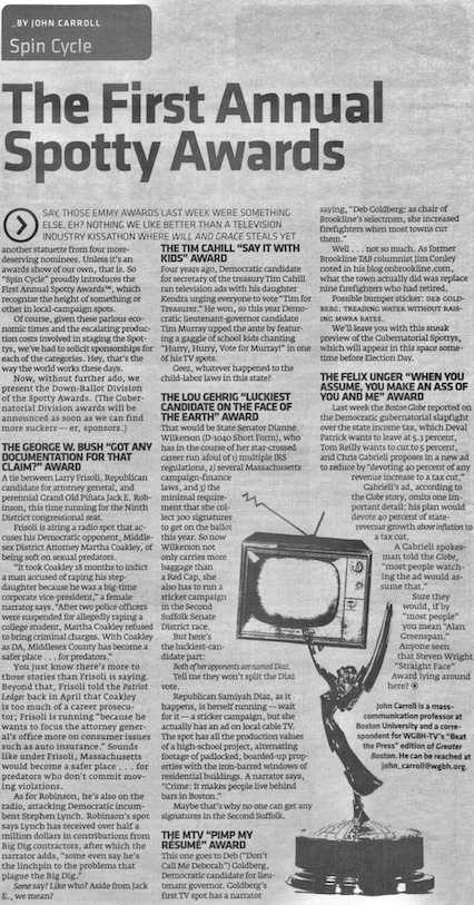 * “There are no words to express my admiration for Campaign Journal, because I’ve never read it.” Jim Braude, NECN