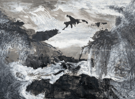 Dancer, choreographer, painter, and filmmaker Shen Wei moves fluidly between disciplines and cultures to create art that expresses a common spirit animating the world around us. His theory of dance seeks to align the energies inside and outside the body, approaching the body and its environment as fundamentally interconnected. As a painter, Shen Wei uses the monumental scale of the canvas to create immersive visual environments that evoke ancient Chinese landscape paintings while enlisting the drips and gestures of twentieth-century abstraction. The size of the paintings invites the viewer on a journey along the canvas, integrating movement into the experience of static works. His films synthesize choreography, time, place, and light to craft ethereal worlds. Shen Wei’s practice transcends the boundaries between visual and performing arts, seeking spiritual meaning that unites his work across disciplines.