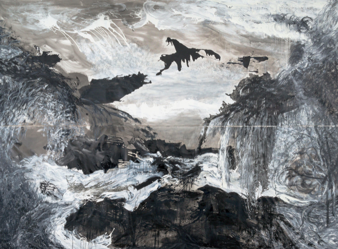 Dancer, choreographer, painter, and filmmaker Shen Wei moves fluidly between disciplines and cultures to create art that expresses a common spirit animating the world around us. His theory of dance seeks to align the energies inside and outside the body, approaching the body and its environment as fundamentally interconnected. As a painter, Shen Wei uses the monumental scale of the canvas to create immersive visual environments that evoke ancient Chinese landscape paintings while enlisting the drips and gestures of twentieth-century abstraction. The size of the paintings invites the viewer on a journey along the canvas, integrating movement into the experience of static works. His films synthesize choreography, time, place, and light to craft ethereal worlds. Shen Wei’s practice transcends the boundaries between visual and performing arts, seeking spiritual meaning that unites his work across disciplines.
