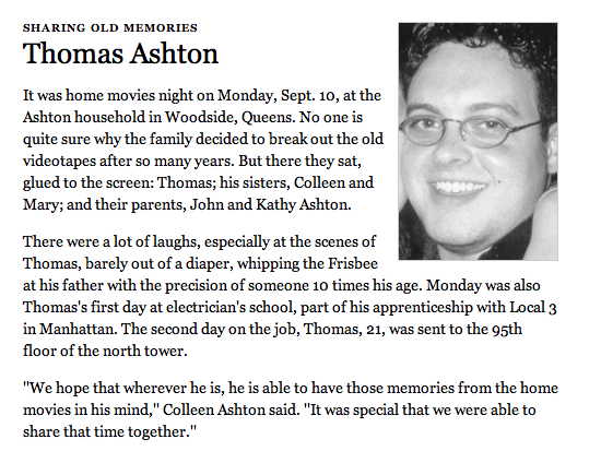 In the weeks after the terror attacks, the Ashton family confronted the tragedy head-on, as this October 3, 2001 Legacy.com post detailed.
