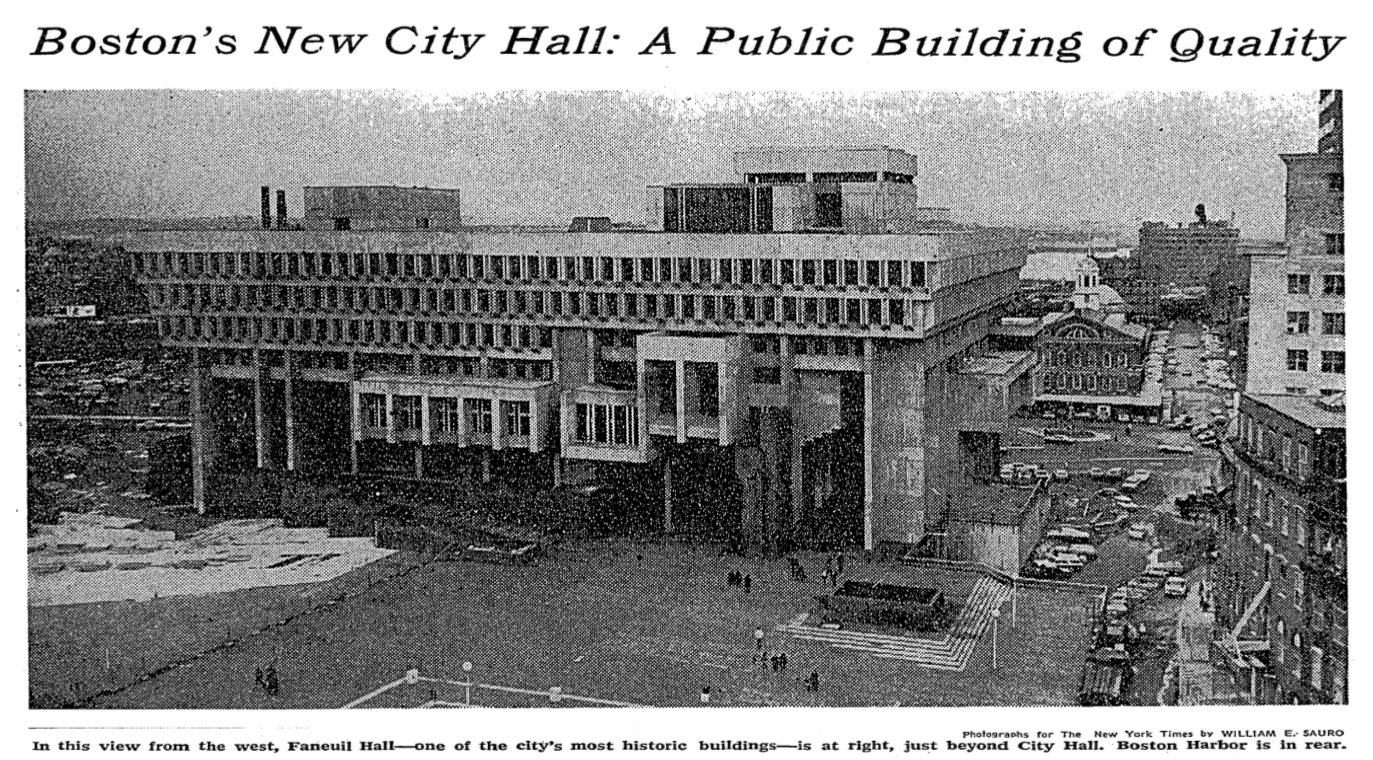 Here at the Global Worldwide Headquarters, we’ve long put on the pom poms for Boston’s Brutalist Boondoggle, roundly endorsing New York Times architectural critic Ada Louise Huxtable’s glowing tribute to the new building on the occasion of its 1969 unveiling.