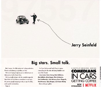 The Times ad promises that Seinfeld’s shows deliver “more smiles per gallon.”