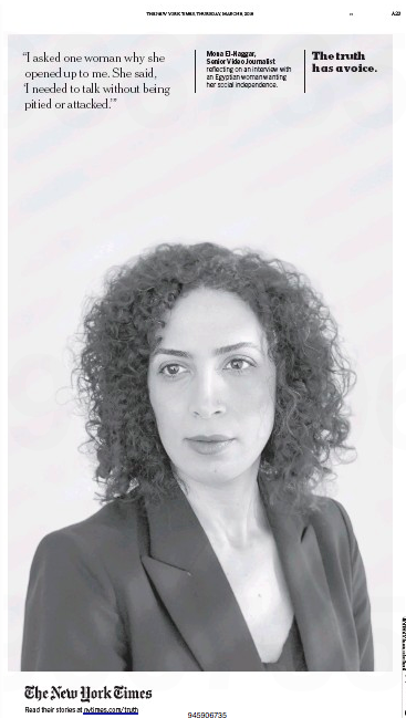 From there the Times drops in a couple of house ads, the first of which features senior video journalist Mona El-Naggar.