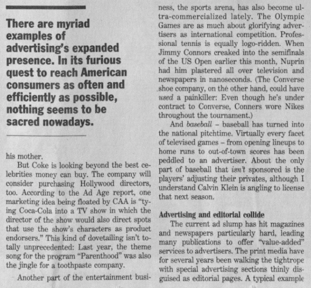Columns also ventured into the arena of sports marketing, such as this piece about Charles Barkley, who insisted he was not a role model – until he was. (Keep in mind that this is the same Charles Barkley who claimed he was misquoted in his autobiography.)
