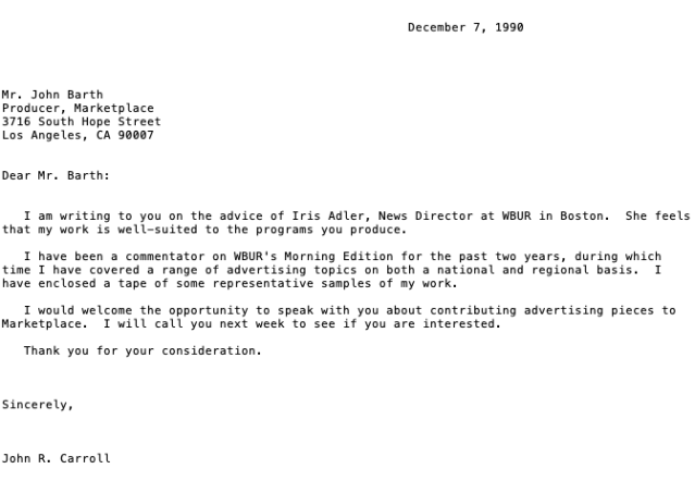Bailey laid out the situation and Edelman, to his credit, said “Okay, let’s give it a go for six months.” The deal was that I had to quit Adweek, refrain from writing for other Globe sections, and restrict any freelancing to radio commentaries. All of which I did.