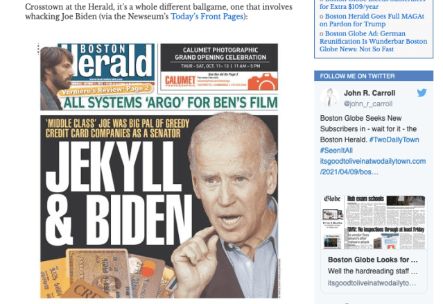 And the Globe is not alone in its dilemma. Crosstown rival Boston Herald, which has long served as a lively index to the Globe, recently undertook a revamp of its own.